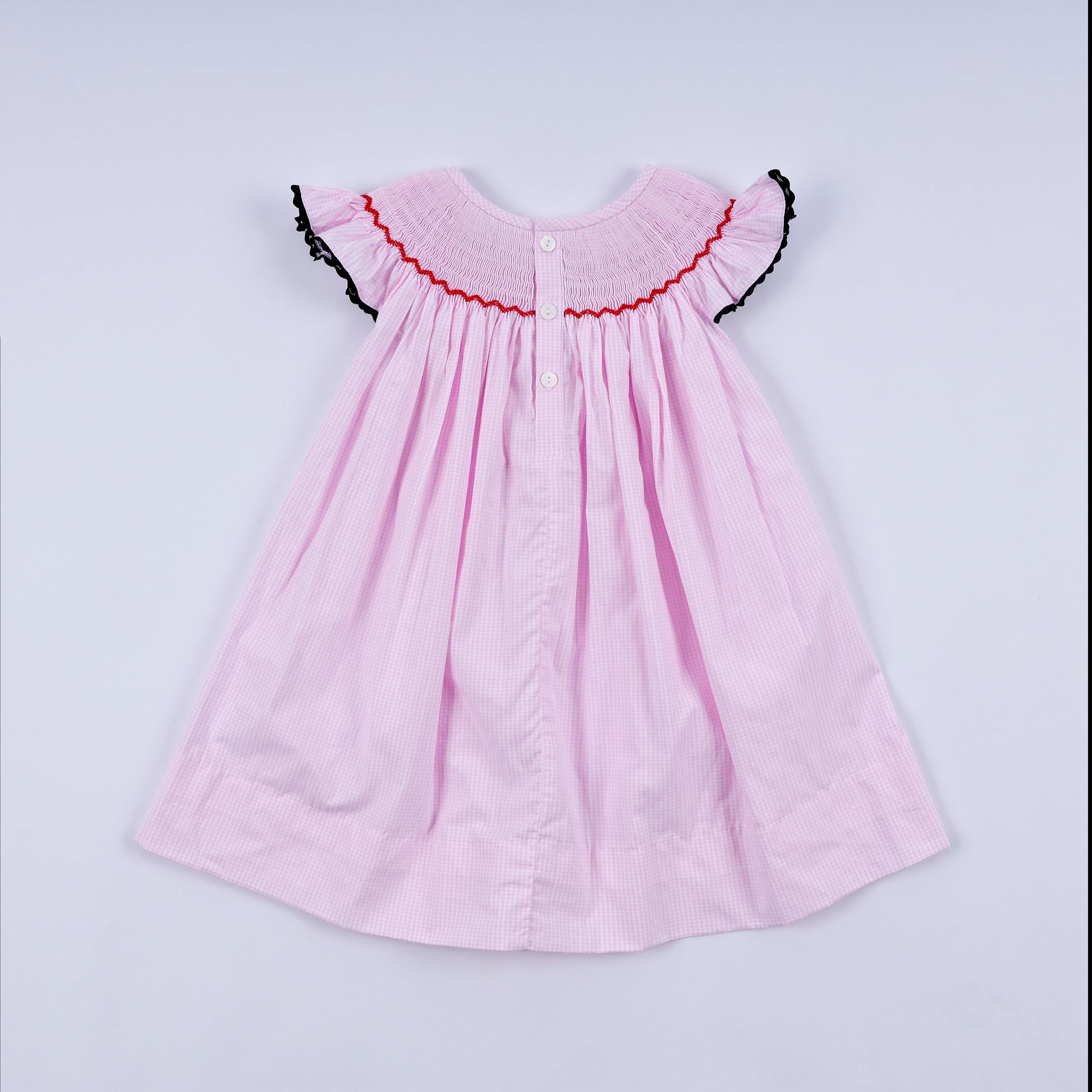 Red character hand smocked plaid ruffle dress